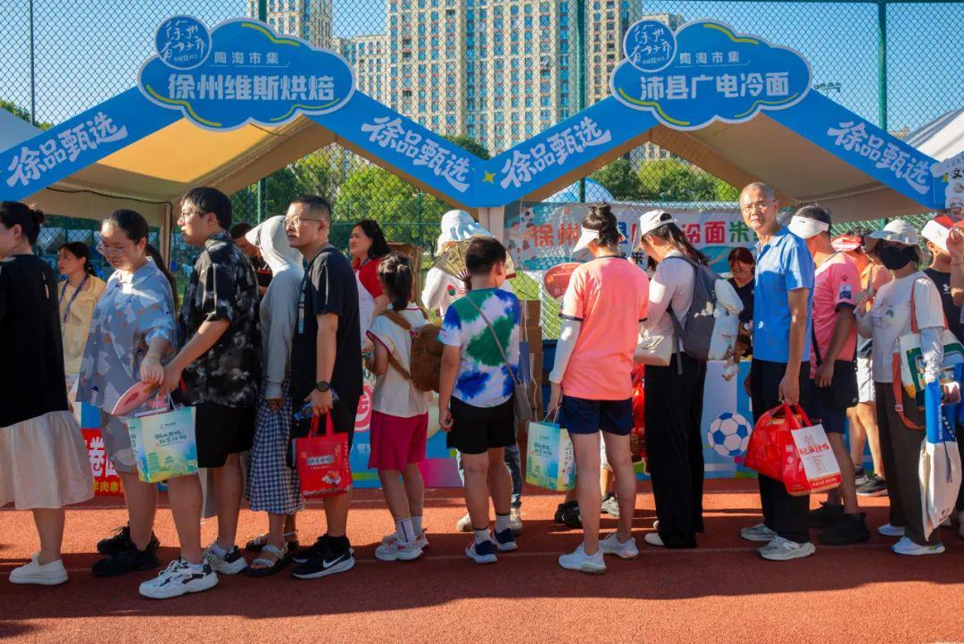 赛事期间配套举办的“陶淘市集”(8月15-16日)成为文旅融合与区域协作的精彩舞台。举办方精选百余家特色商户,其中包括16家特邀徐州品牌,涵盖美食、非遗、文创、汽车等丰富品类,齐聚宜兴市体育中心体育场外场,构建集体育竞技、文化体验、美食娱乐于一体的多元场景。